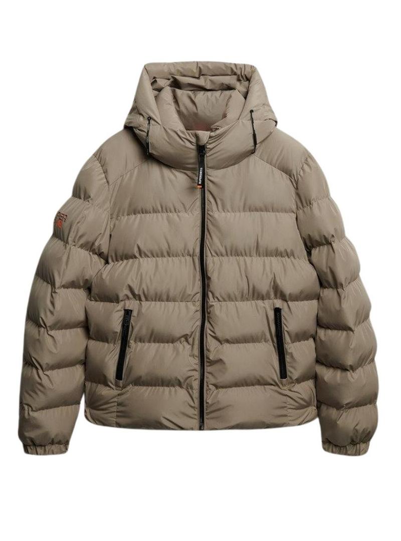 Camisa acolchoada Superdry Hooded Sports Puffer bege para homem.