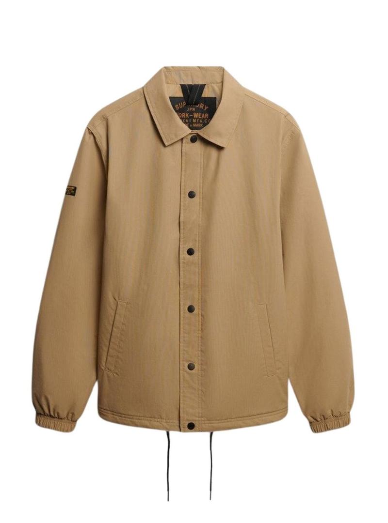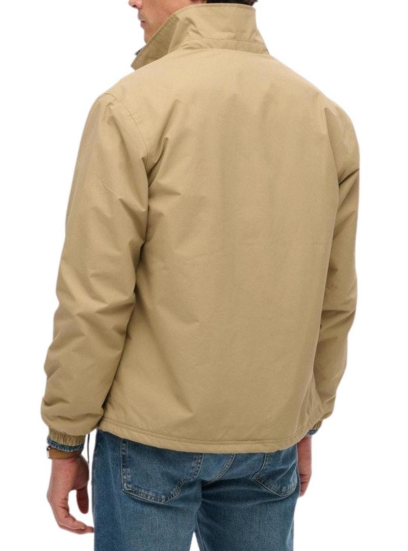 Casaco Superdry. Modelo Nylon Coach. Cor caramelo. Casaco com gola. Dois bolsos laterais. Fecho com botões de pressão. Punhos elásticos. Cordão ajustável na barra. Etiqueta com o logo da Superdry na manga. Forro interior de poliéster reciclado.