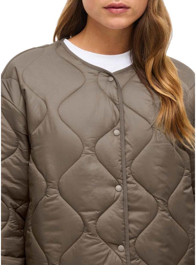 Jaqueta acolchoada da Vila. Modelo Vidune. Cor Cinza. Gola redonda. Fecho frontal com botões de pressão. Bolsos laterais. Enchimento leve. Corte regular. Ombros levemente caídos.