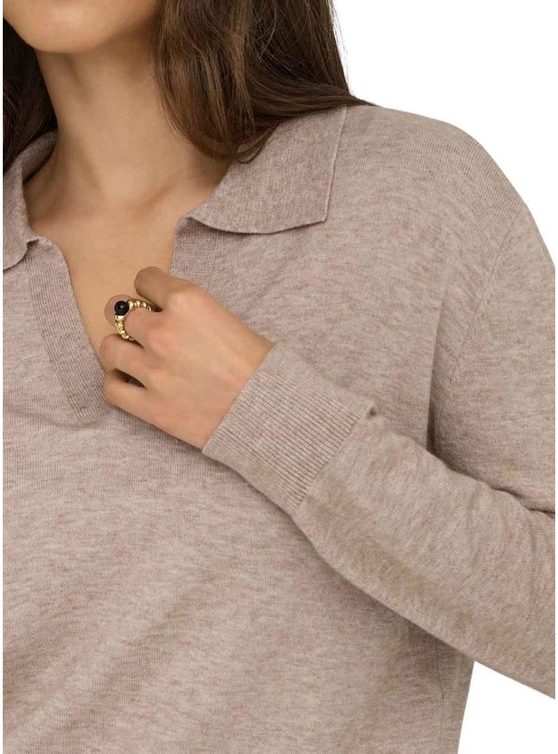 Jersey Only. Modelo Libi. Cor bege. Gola polo com decote em V. Extremidades caneladas. Manga comprida. Ajuste regular. Tecido leve. Estilo básico.
