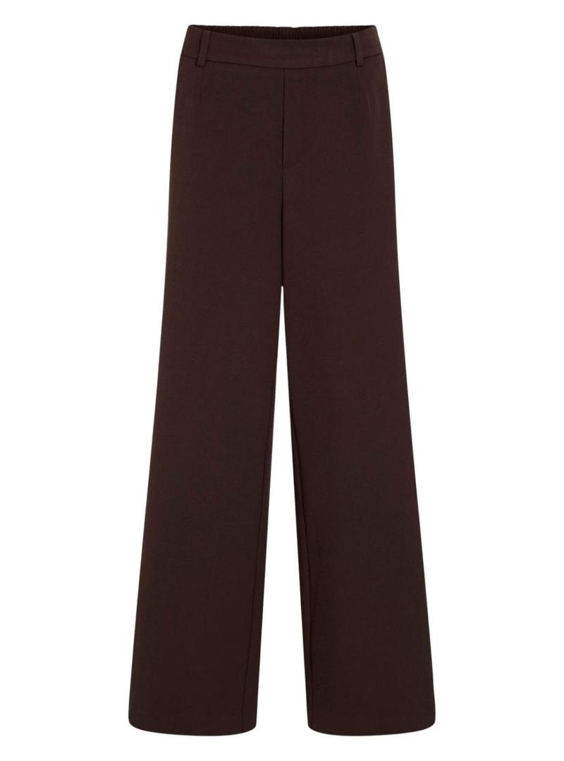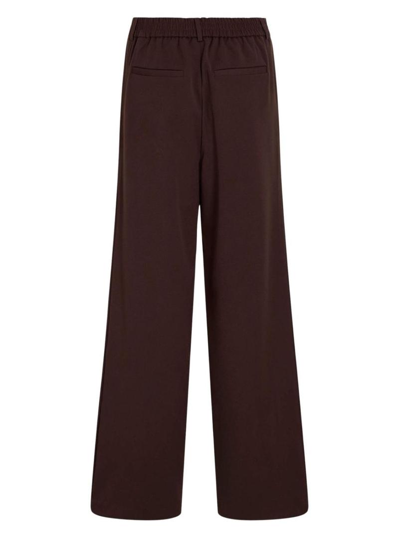 Calça Vila. Modelo Vivarone. Cor marrom. Cintura alta e corte largo. Cintura elástica na parte de trás. Fecho com zíper oculto. Bolsos laterais. Bolsos traseiros decorativos. Passantes para cinto.