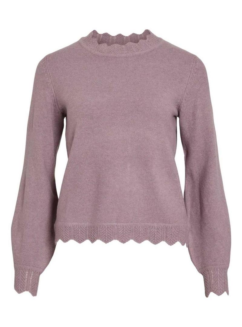 Camisola Vila. Modelo Kolina. Cor roxo. Gola redonda. Manga comprida. Ajuste regular. Acabamentos com barra trançada.