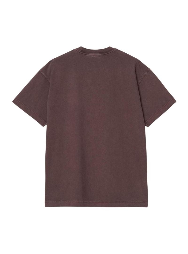 Camiseta Carhartt. Modelo Dyed. Cor granada. Gola redonda. Manga curta. Ajuste largo. Etiqueta da marca no peito. Efeito desbotado.