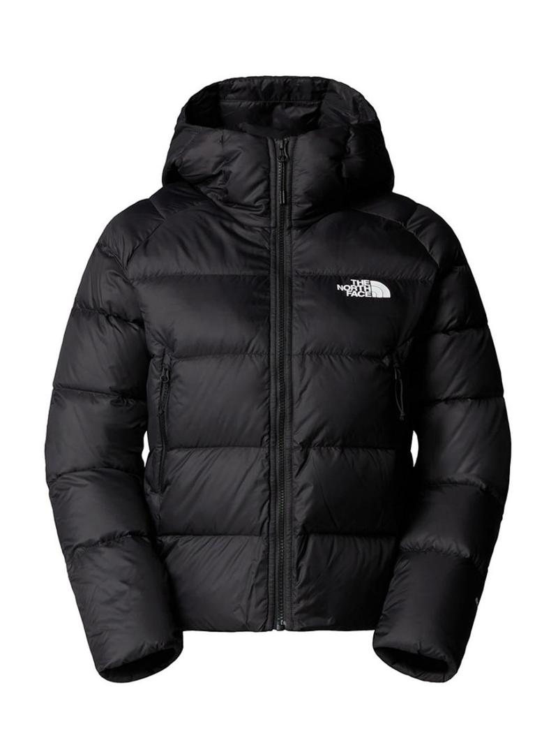 Jaqueta The North Face. Modelo Hydrenalite. Cor preta. Silhueta curta. Confeccionado em tecidos reciclados. Enchimento de penas de grande espessura. Quente em ambientes frios. Penas de ave aquática recicladas de 600 cuins. Capuz integrado. Bolsos com zíper. Barra com acabamento limpo e acabamento elástico parcial na parte de trás. Fecho de zíper VISLON. Punhos com acabamento elástico. Detalhes da marca bordados.