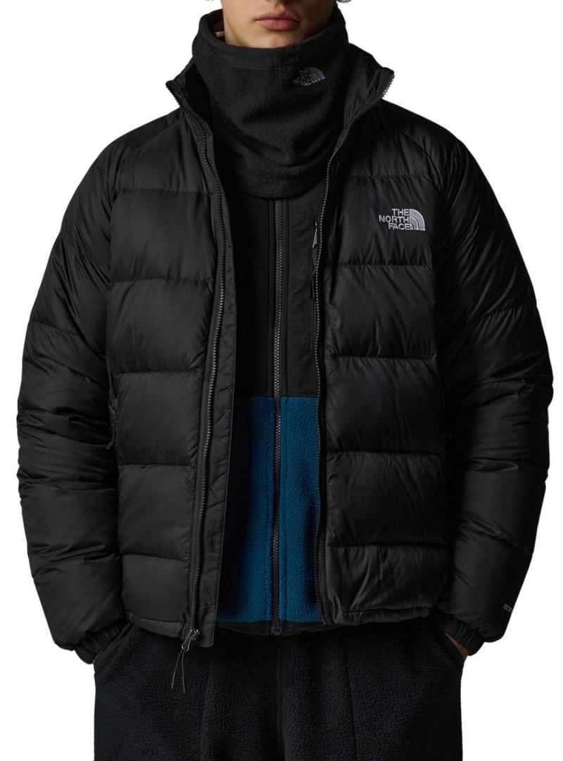 Jaqueta The North Face. Modelo Hydrenalite. Cor preta. Feito de tecidos reciclados. Repelente à água com acabamento hidrofóbico. Enchimento de penugem de grande espessura. Quente em ambientes frios. Penugem de ave aquática reciclada de 600 cuins. Gola alta. Bolsos com zíper. Barra com cordão ajustável interno e pontas de fixação. Fecho de zíper VISLON. Punhos com acabamento elástico. Detalhes da marca bordados.