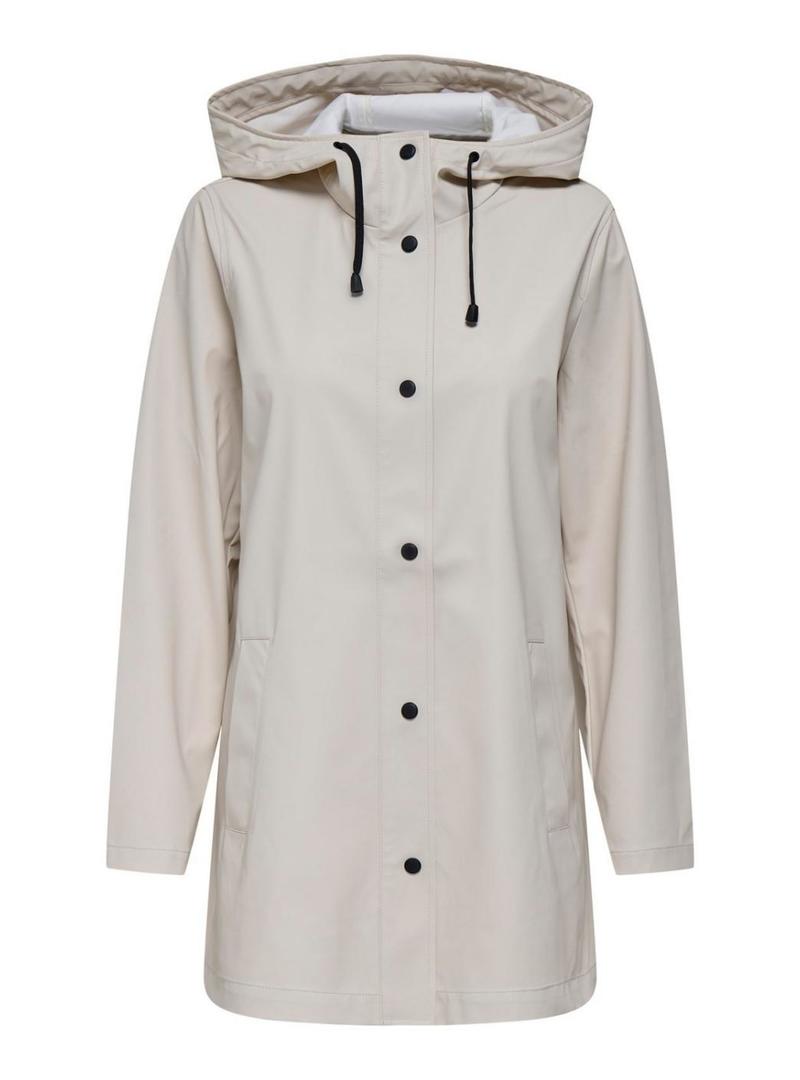 Capa de chuva Only. Cor branca. Modelo Newellen. Capuz ajustável com cordões. Tecido impermeável. Fecho com botões de pressão. Bolsos laterais. Ajuste reto. Estilo básico. Tecido leve.