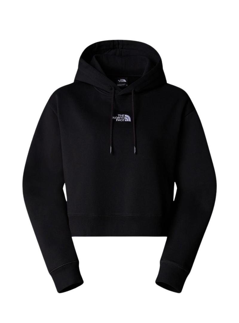 Moletom The North Face. Modelo Essential Crop. Cor preta. Extremidades caneladas. Ajuste folgado. Capuz com cordão ajustável. Logo bordado no peito e nas costas.