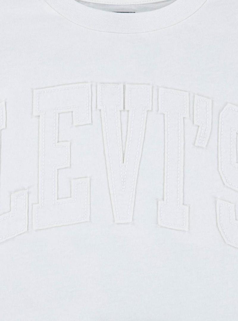 Camiseta Levis. Modelo Meet and Greet. Cor branca. Gola redonda. Manga curta. Corte cropped. Etiqueta da marca na lateral. Logo bordado no peito.