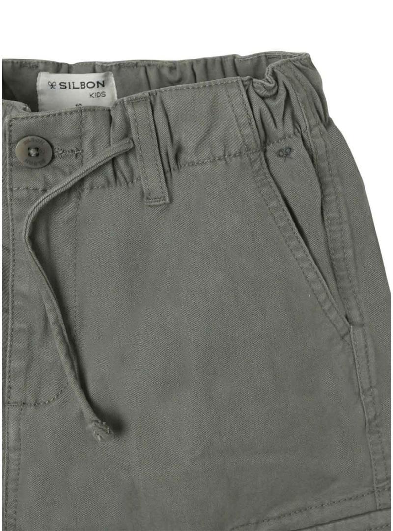 Calças Silbon. Modelo Sport Cargo. Cor verde. Efeito lavado. Cintura elástica com cordão. Bolsos de vivo atrás. Bolsos laterais com aba. Ajuste slim. Fecho de botão e zíper.