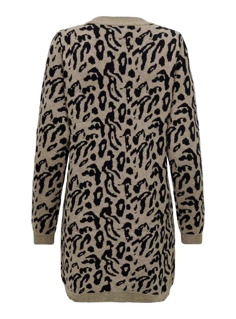 Vestido de malha Only. Modelo Onljenni. Cor marrom. Gola redonda. Manga comprida. Comprimento curto. Corte regular. Estampa animal print. Acabamentos em canelado.