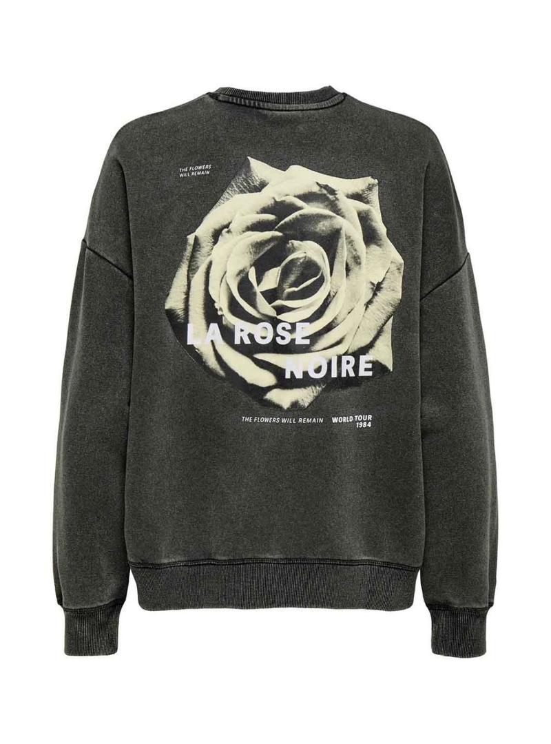 Moletom Only. Modelo Sinna. Cor preta. Gola redonda. Manga comprida. Estampado no peito e nas costas. Acabamentos canelados. Ombros ligeiramente caídos.