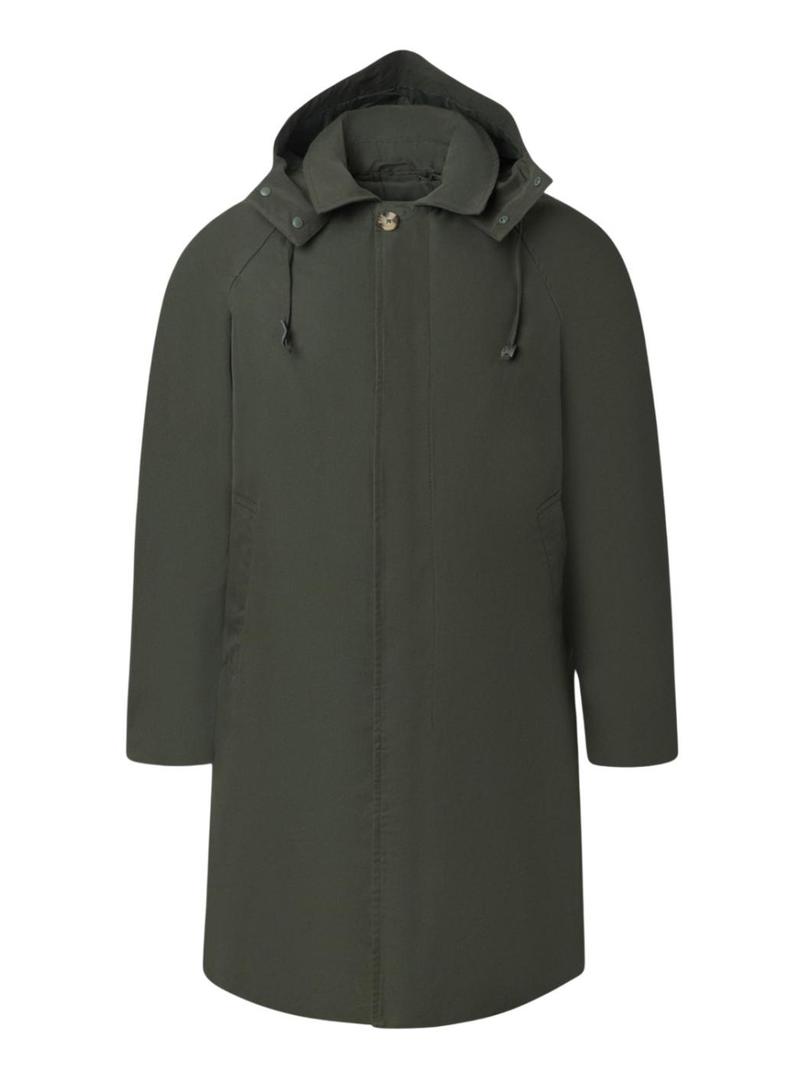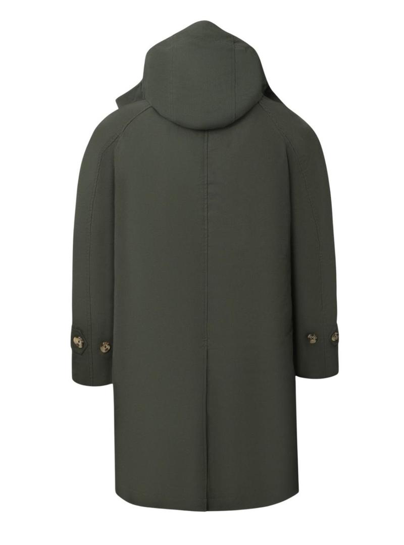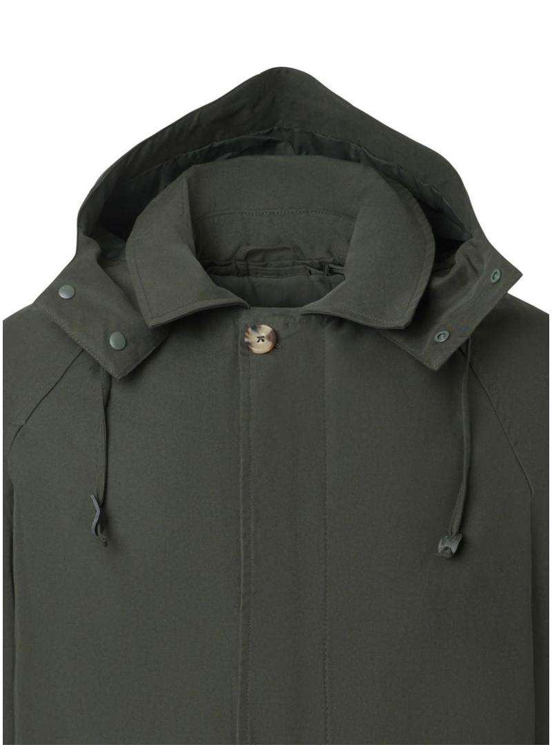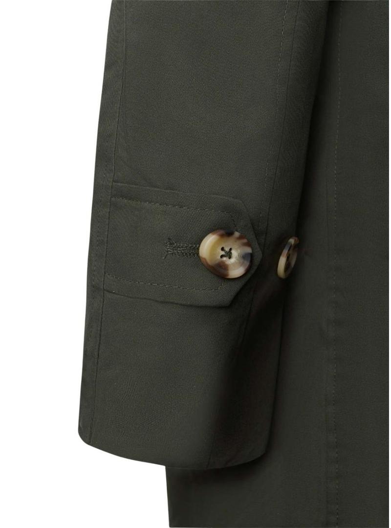 Trench coat Silbon. Cor verde. Corte reto feito em uma suave mistura de algodão que proporciona conforto e durabilidade. Colarinho clássico. Fecho frontal com aba de botões personalizados ocultos e um botão visível para um toque distinto. Mangas longas com ajustadores nos punhos. Capuz com cordão ajustável para maior proteção e estilo. Forro interno removível para se adaptar a diferentes condições climáticas.