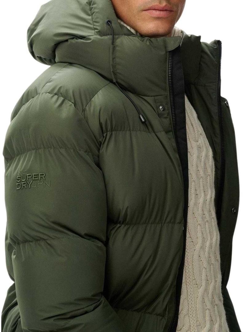 Jaqueta Superdry com capuz acolchoada verde para homem.