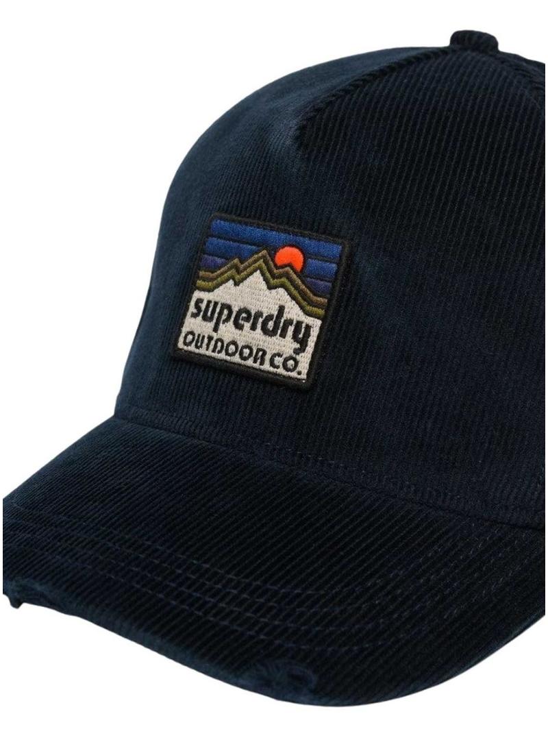 Boné de veludo cotelê Superdry. Modelo Graphic Cord Trucker. Cor azul marinho. Design clássico de seis painéis. Acabamento vintage. Viseira curva com efeito desgastado. Parte traseira com tira ajustável. Emblema bordado.