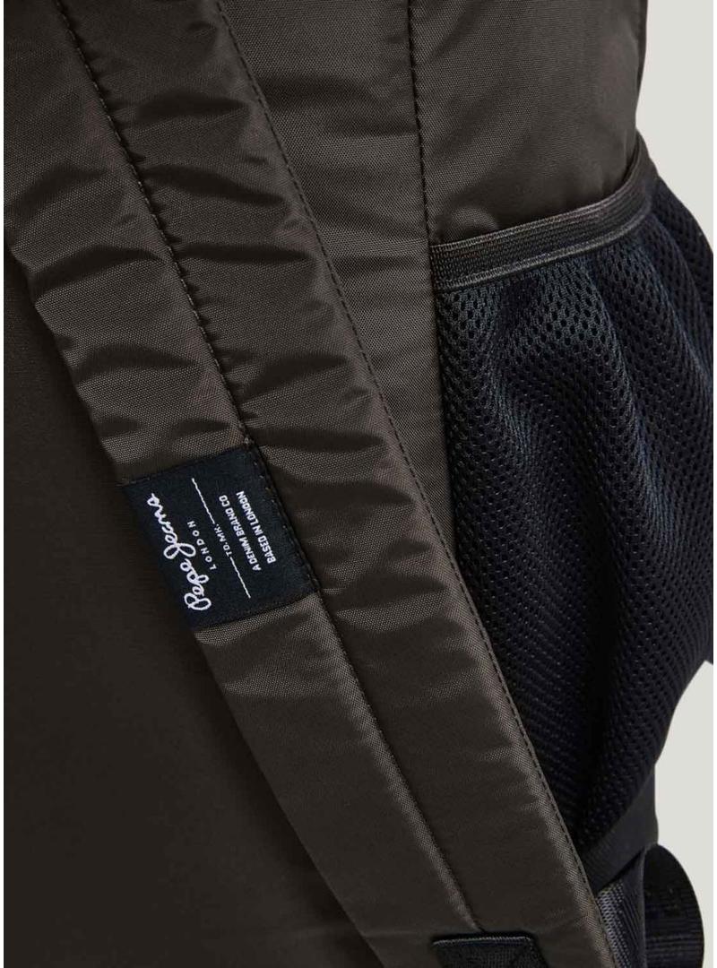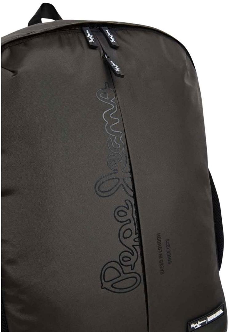 Mochila Pepe Jeans. Modelo Devin. Cor preta. Compartimento principal com fecho de correr e puxador de borracha com logotipo em relevo. Bolso interior acolchoado para laptop. Alça curta superior para pendurar. Alças de ombro acolchoadas e ajustáveis. Bolso frontal auxiliar com fecho de correr. Bolsos laterais de malha. Logo PEPEJEANS na posição vertical na parte frontal. Dimensões: 13,5 cm x 32 cm x 46,5 cm.