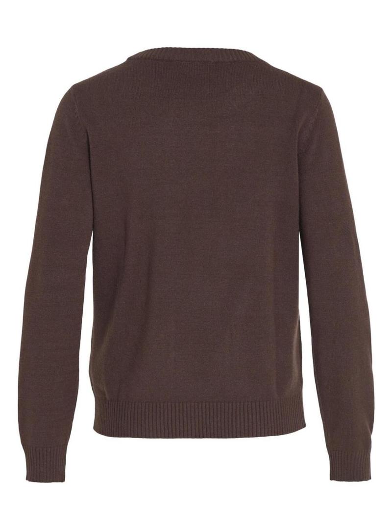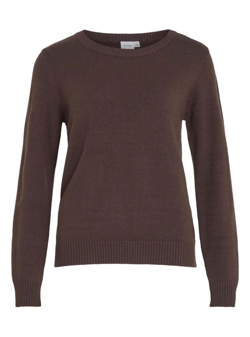 Camisola Vila. Modelo Viril. Cor marrom. Gola redonda. Manga comprida. Ajuste regular. Extremidades caneladas. Tecido macio de malha. Estilo básico.