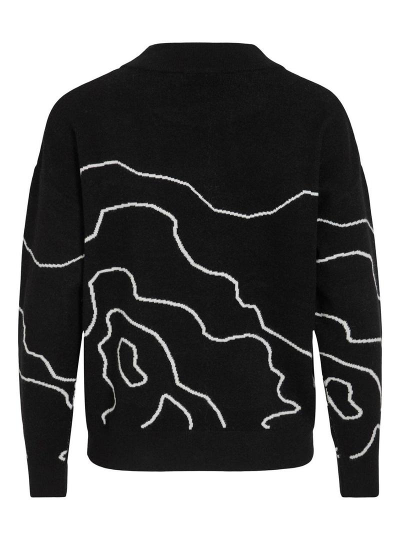 Camisola Vila. Modelo Vitif. Cor preta. Estampa jacquard em branco. Gola redonda. Ombros caídos. Ajuste folgado. Extremidades caneladas.