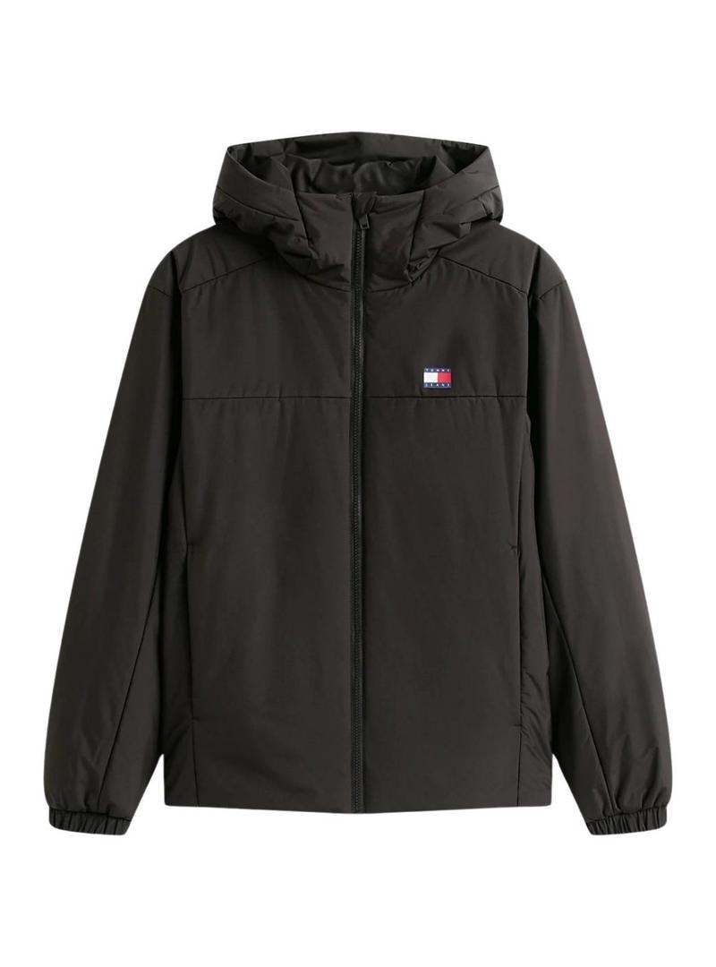 Anoraque acolchoado Tommy Jeans. Modelo Poly. Cor preto. Feito em tecido ripstop resistente com acabamento repelente à água. Design com enchimento leve para maior calor. Capuz fixo. Gola alta. Fecho frontal com zíper. Dois bolsos laterais abertos e um bolso interior com ilhós. Punhos elásticos. Remendo com o logo da Tommy no peito.