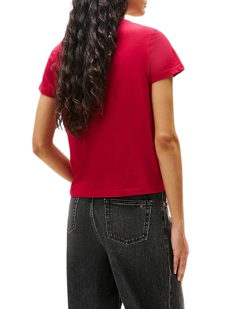 Camiseta Tommy Jeans Essential vermelha para mulher.