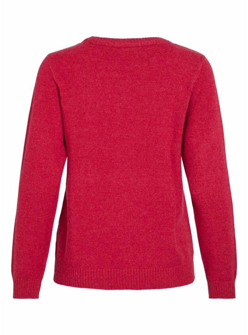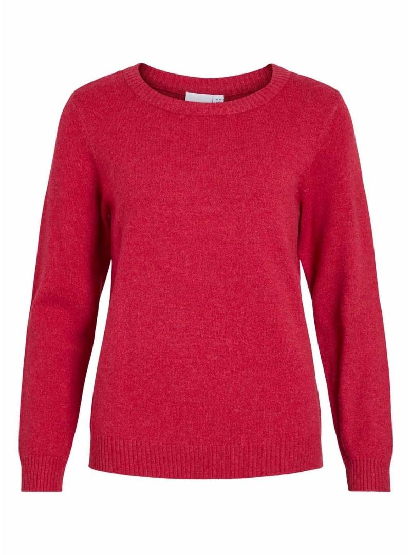 Camisola Vila. Modelo Viril. Cor vermelha. Gola redonda. Manga comprida. Ajuste regular. Extremidades caneladas. Tecido macio de malha. Estilo básico.