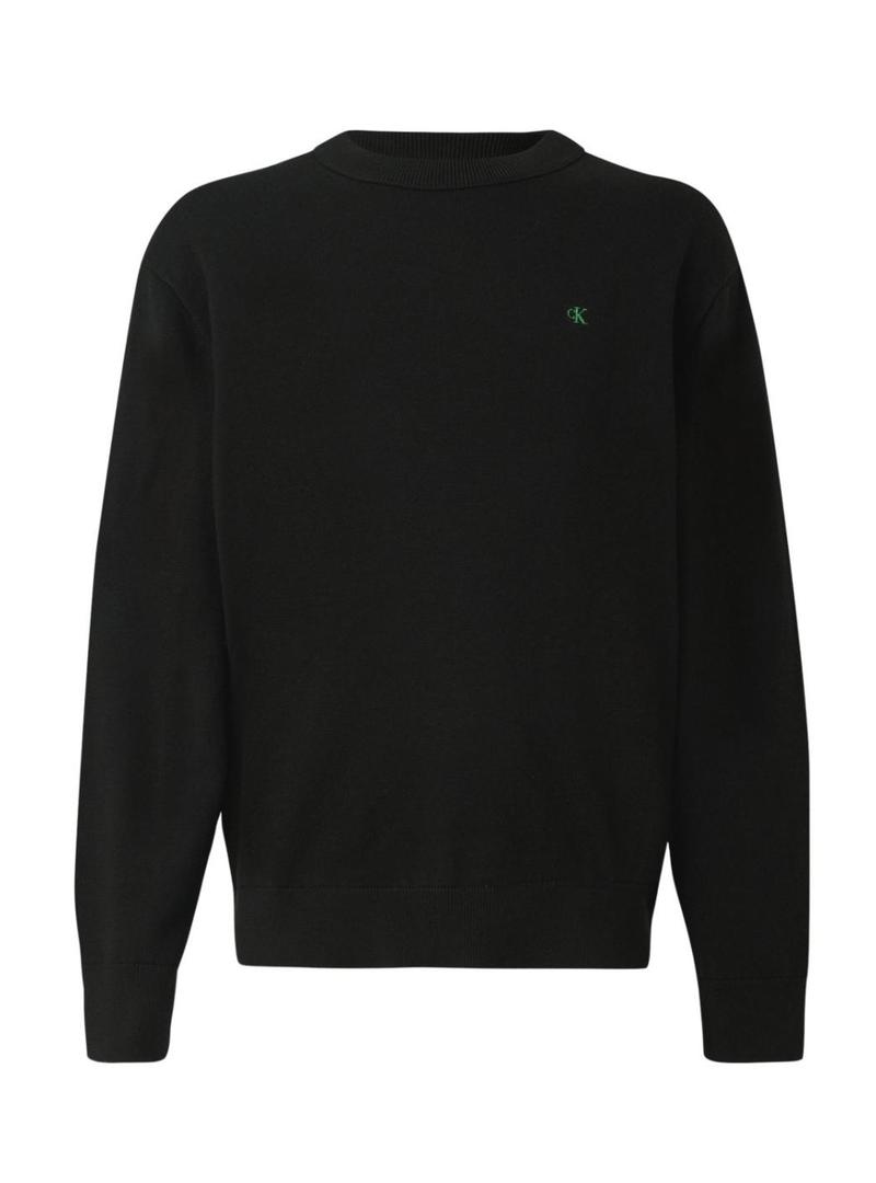 Camisola de malha de algodão penteado Calvin Klein. Modelo Ez Cotton. Cor preta. Gola redonda. Manga comprida. Acabamentos canelados. Monograma bordado da Calvin Klein no peito. Ajuste relaxado.