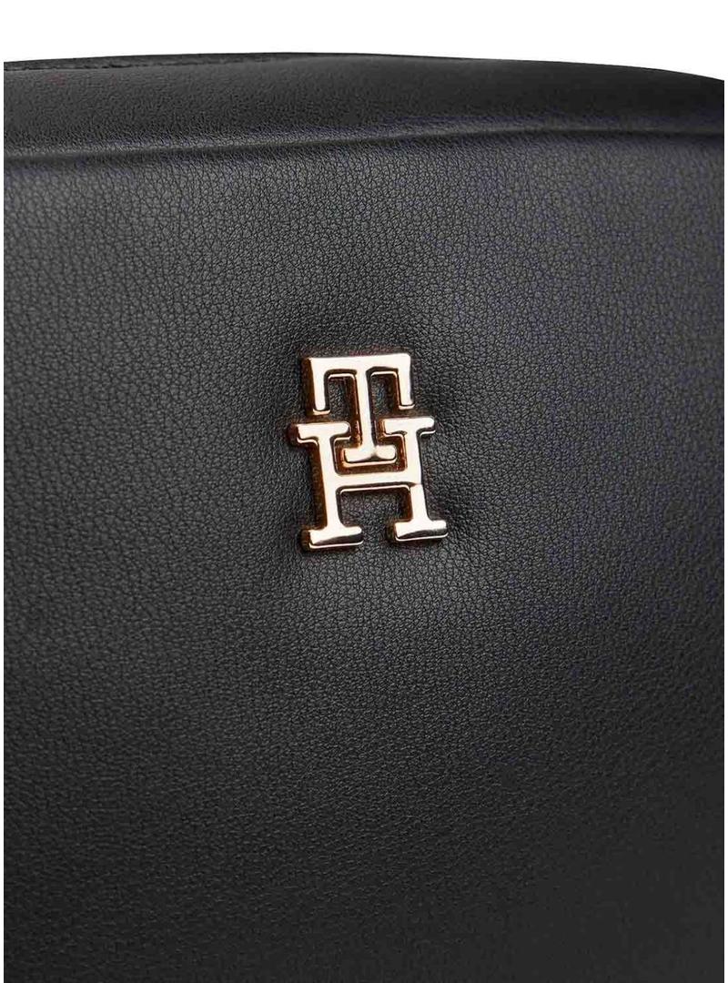 Bolsa Tommy Hilfiger. Modelo Popette Soft Camera. Cor preta. Design arredondado e acabamento liso, com detalhes metalizados. Fecho de correr e alça de ombro removível tecida. Compartimento principal com bolso interior com fecho de correr. Decorado com o monograma TH na frente e detalhes característicos da Tommy Hilfiger. Medidas: 21,5 x 6,5 x 15 cm. Capacidade: 2 L.