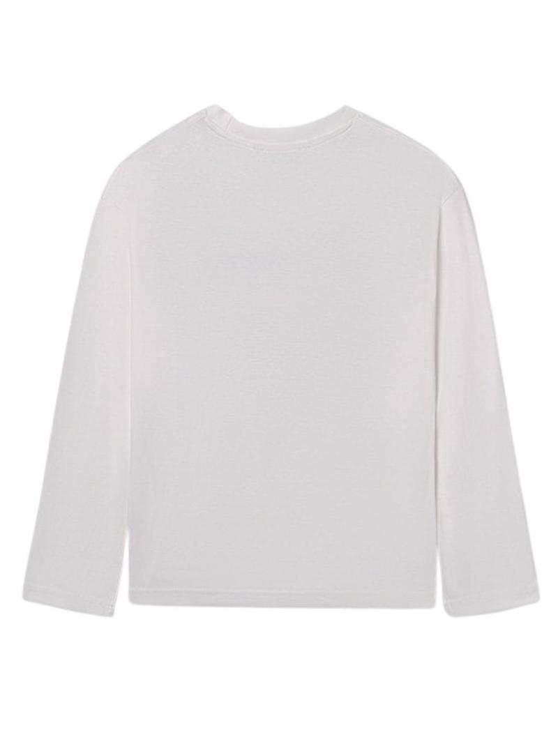 Camiseta Mayoral. Modelo Endless Possibilities. Cor branca. Gola redonda. Manga comprida. Mensagem estampada no peito. Ajuste regular.