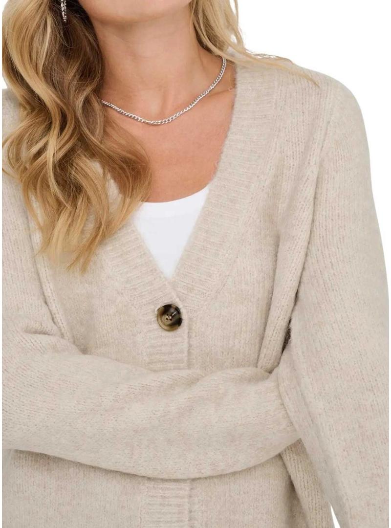 Cárdigan de malha Only. Modelo Zoey. Cor bege. Decote em V. Fecho com botões. Acabamentos canelados. Corte regular. Manga comprida.