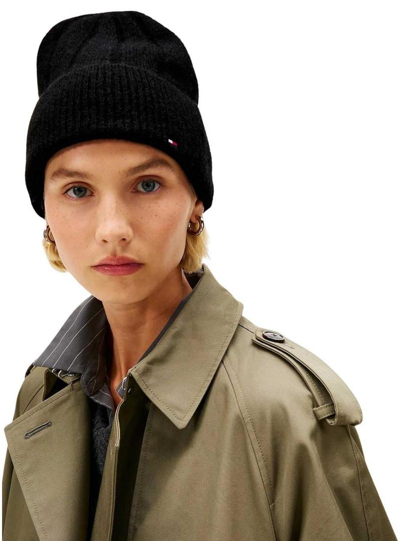 Touca de lã Tommy Hilfiger Fluffy preta para mulher