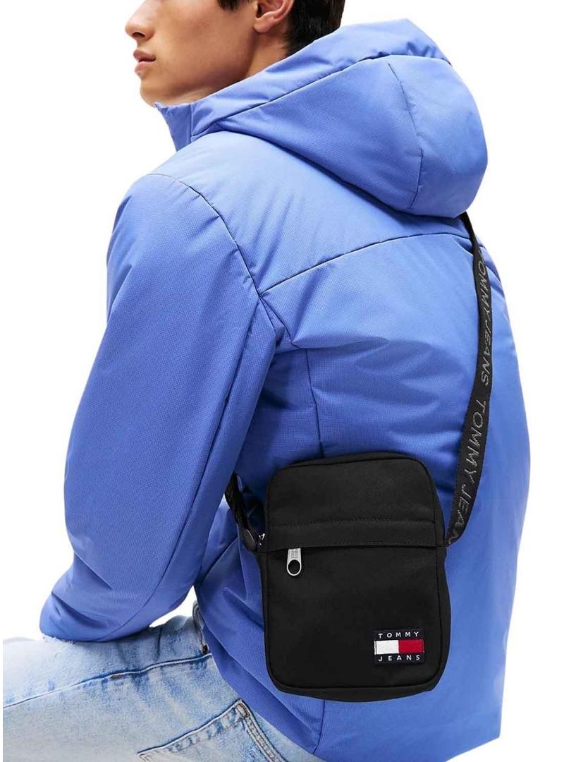 Bolsa Tommy Jeans Essential Crossover Reporter preta para homens