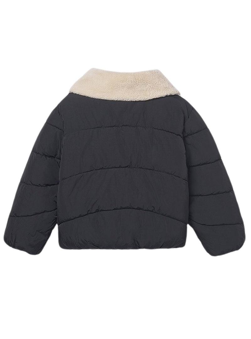 Casaco acolchoado Mayoral. Cor preta. Gola em contraste bege com tecido de carneiro. Fecho com zíper. Bolsos laterais. Ajuste regular.
