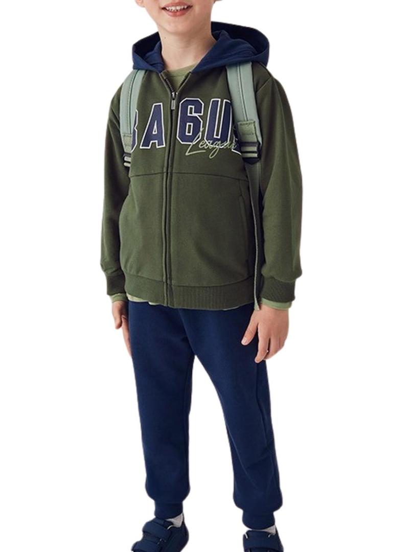 Moletom Mayoral de três peças verde e azul marinho para menino.