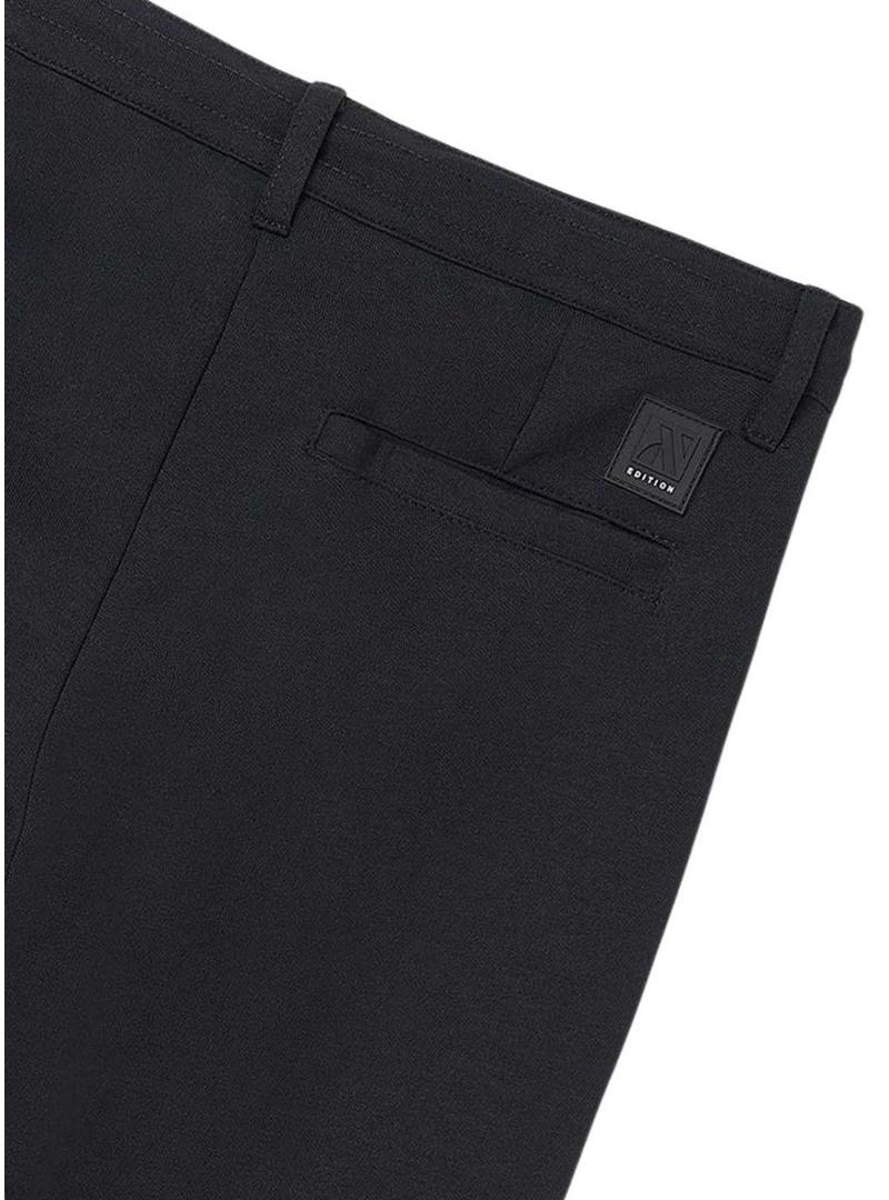 Calça Mayoral. Modelo em ponto inteligente. Cor preta. Cintura elástica com cordão ajustável. Fechamento com botão e zíper. Bolsos laterais. Corte slim. Bolso vivo traseiro. Etiqueta da marca.