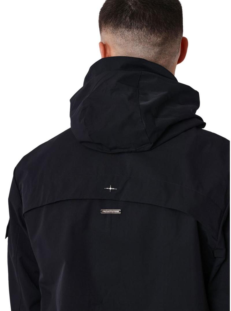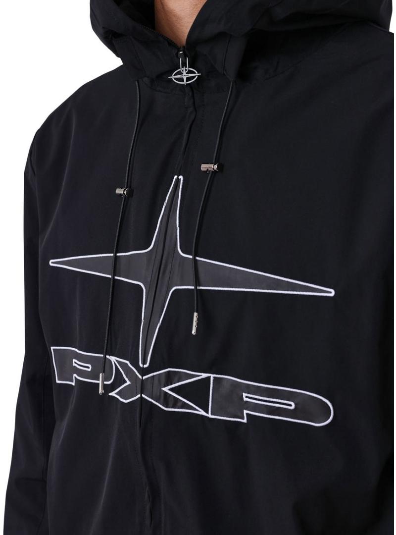 Casaco Project x Paris. Cor preta. Fecho com zíper. Feito em tecido impermeável. Capuz alto com detalhes decorativos. Logotipo bordado no centro do peito. Bolsos laterais com zíper. Inclui um bolso em relevo na manga e detalhes metálicos personalizados. Extremidades elásticas.