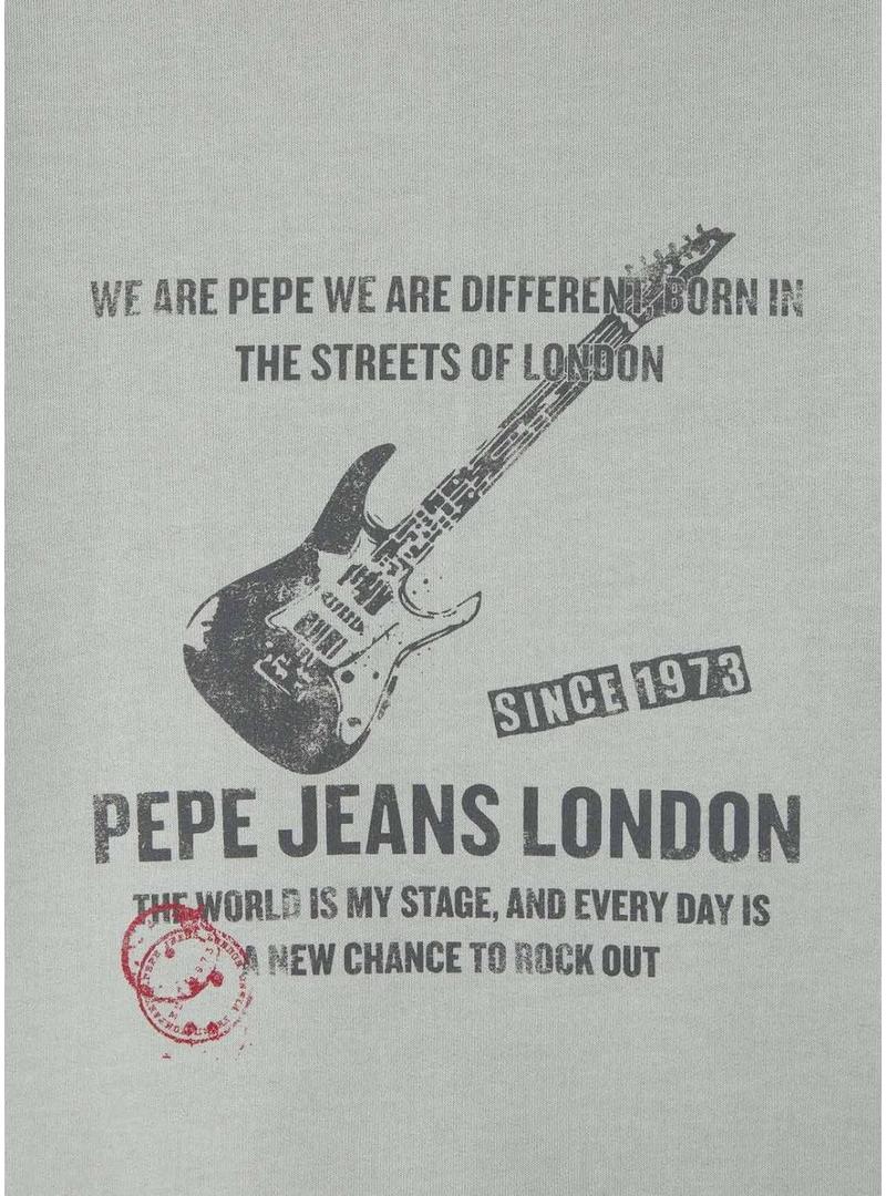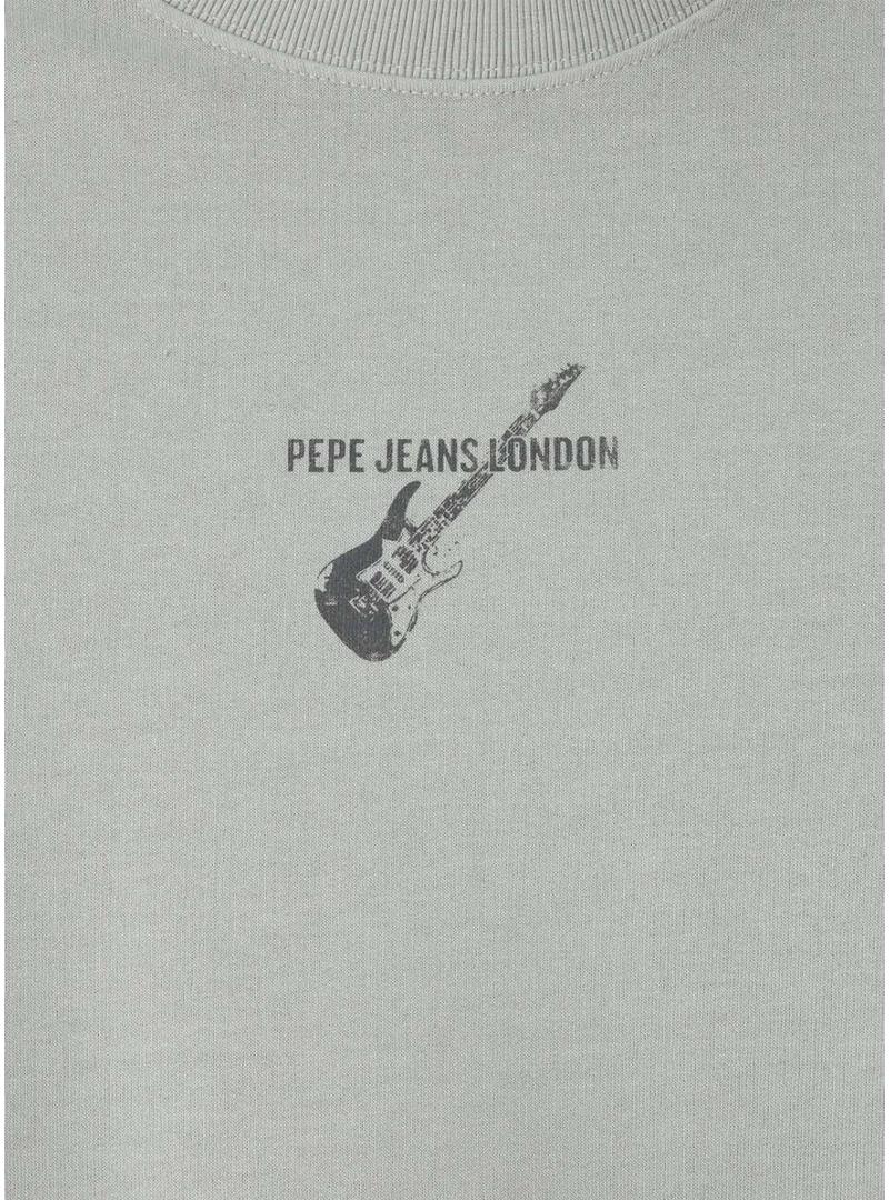 Moletom Pepe Jeans. Modelo Gyo. Cor cinza. Gola redonda. Manga longa. Extremidades elásticas. Ajuste regular. Ilustração de guitarra estampada no peito e nas costas.