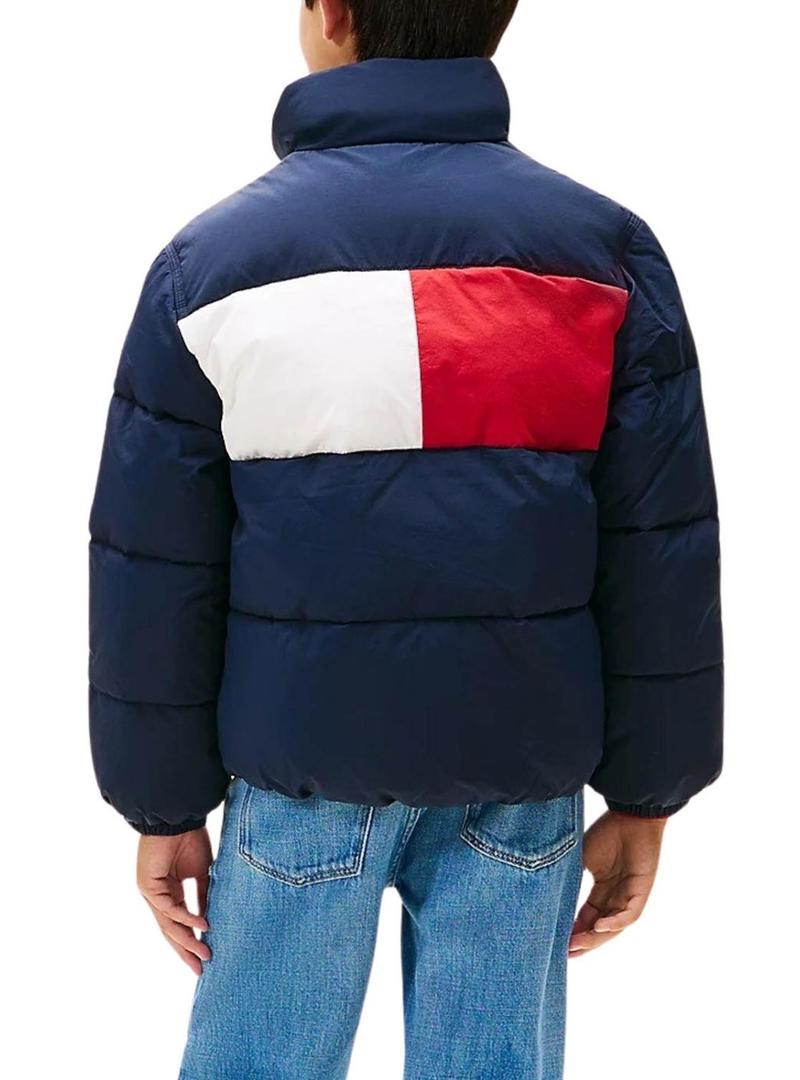 Casaco acolchoado Tommy Hilfiger. Modelo Flag. Cor azul marinho. Feito de nylon. Logo color block na parte de trás. Gola alta para maior proteção. Inclui zíper bidirecional. Dois bolsos frontais com borda, punhos elásticos e remendo com o logo da marca na manga. Detalhes distintivos e logo bordado da Tommy Hilfiger no peito completam seu estilo moderno e funcional. Para meninos e meninas.