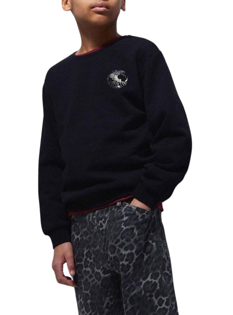 Moletom Name It. Modelo Randall. Cor preta. Gola redonda. Extremidades caneladas. Ajuste regular. Ilustração estampada no peito e nas costas em tom.