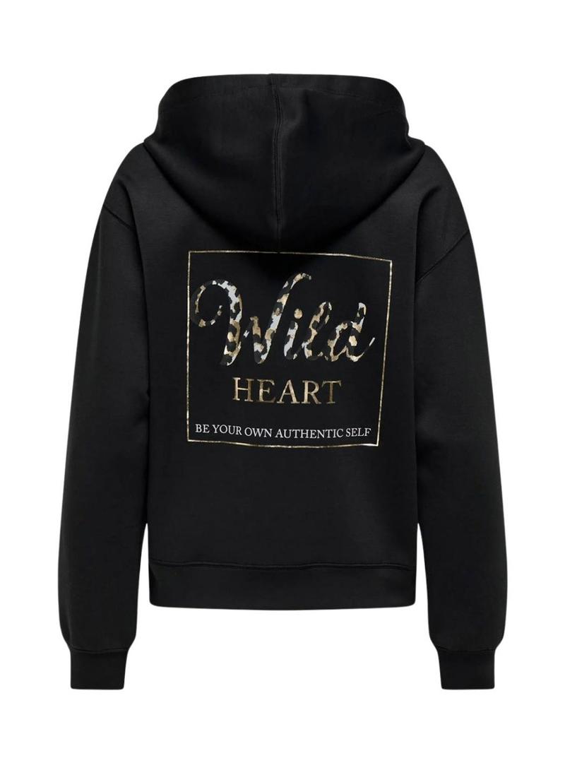 Moletom Only. Cor preta. Com capuz. Manga comprida. Bolso de canguru. Coração com estampa de leopardo no peito. Estampa nas costas. Formato regular. A modelo está vestindo tamanho S.