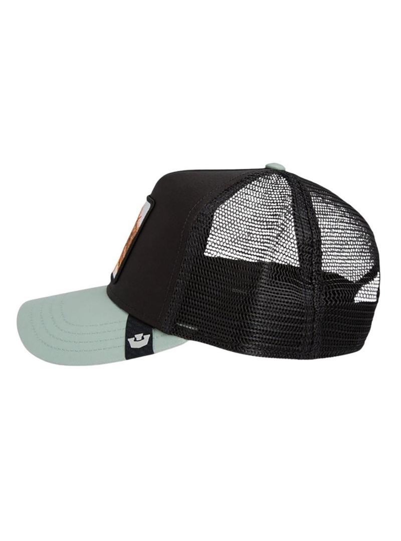 Boné Goorin Bros. Modelo The Outlaw Lizard. Cor preta e turquesa. Parte de trás em malha. Fita ajustável na parte de trás. Etiqueta lateral da marca. Parche Iguana bordado na frente.