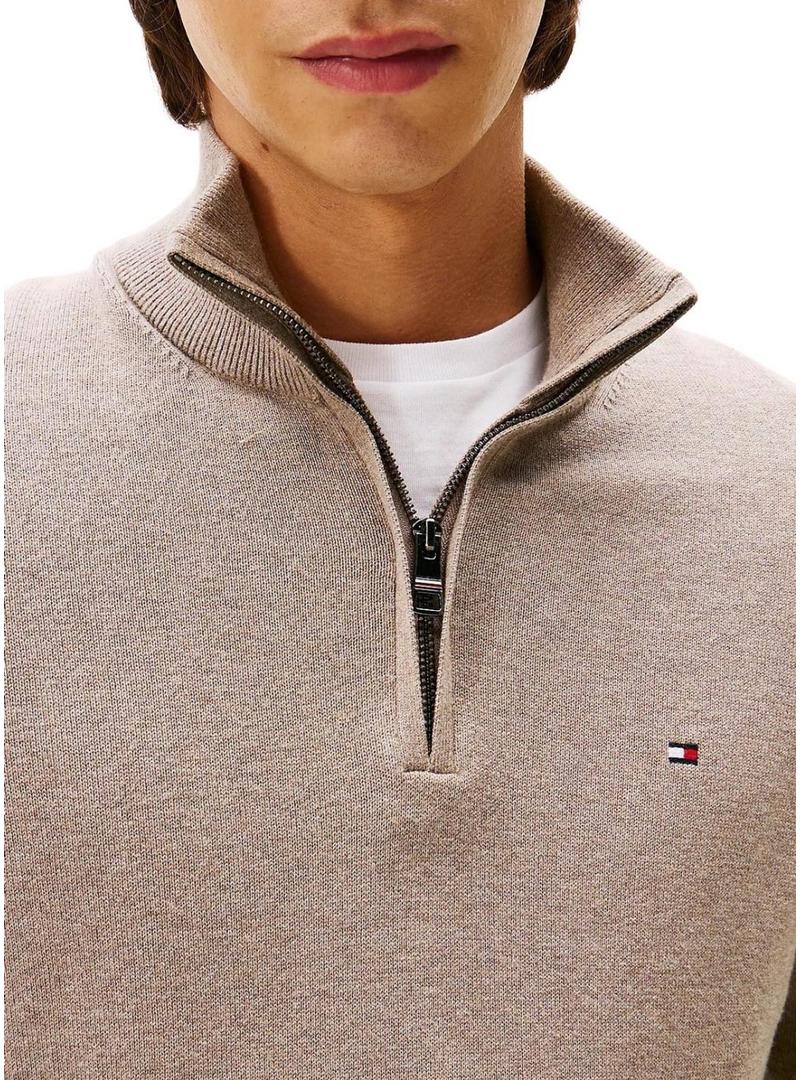 Camisola Tommy Hilfiger. Gola alta com zíper. Cor bege. Logotipo bordado no peito. Extremidades elásticas. Ajuste regular. Fita tricolor no pescoço de trás.