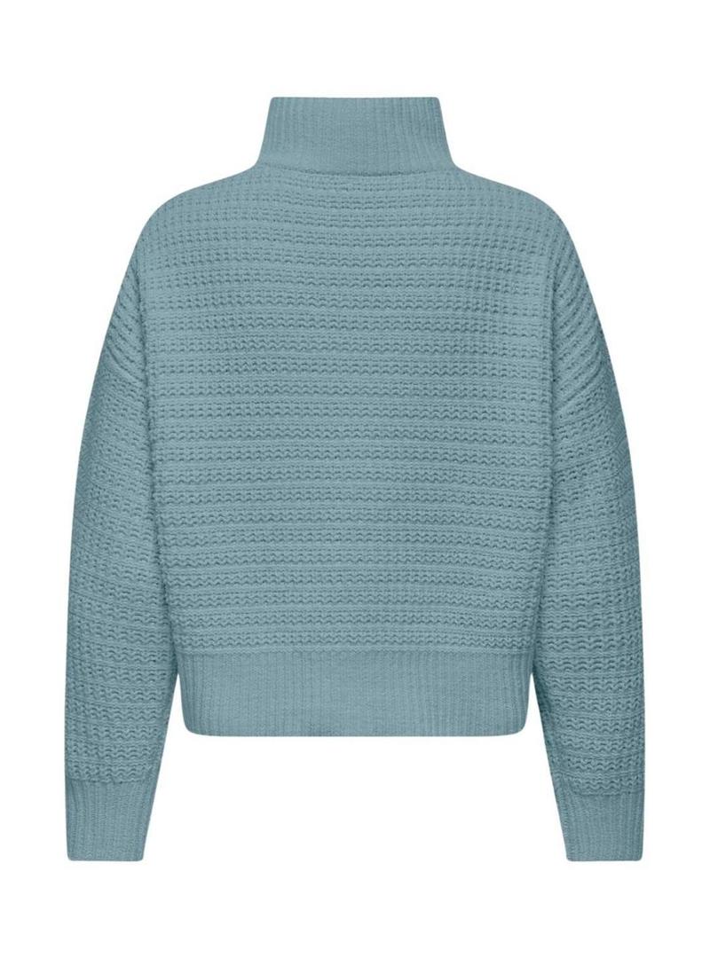 Camisola Only em azul. Gola alta. Manga comprida. Acabamentos canelados. Ombros caídos. Formato regular. O modelo veste o tamanho S.