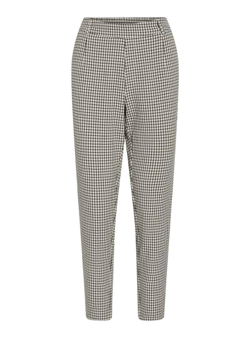 Calça Vila. Xadrez estampado. Cintura alta. Corte ajustado. Bolsos laterais. Cintura elástica na parte de trás. Passadores para cinto. Bolsos traseiros decorativos. O modelo veste o tamanho 36.