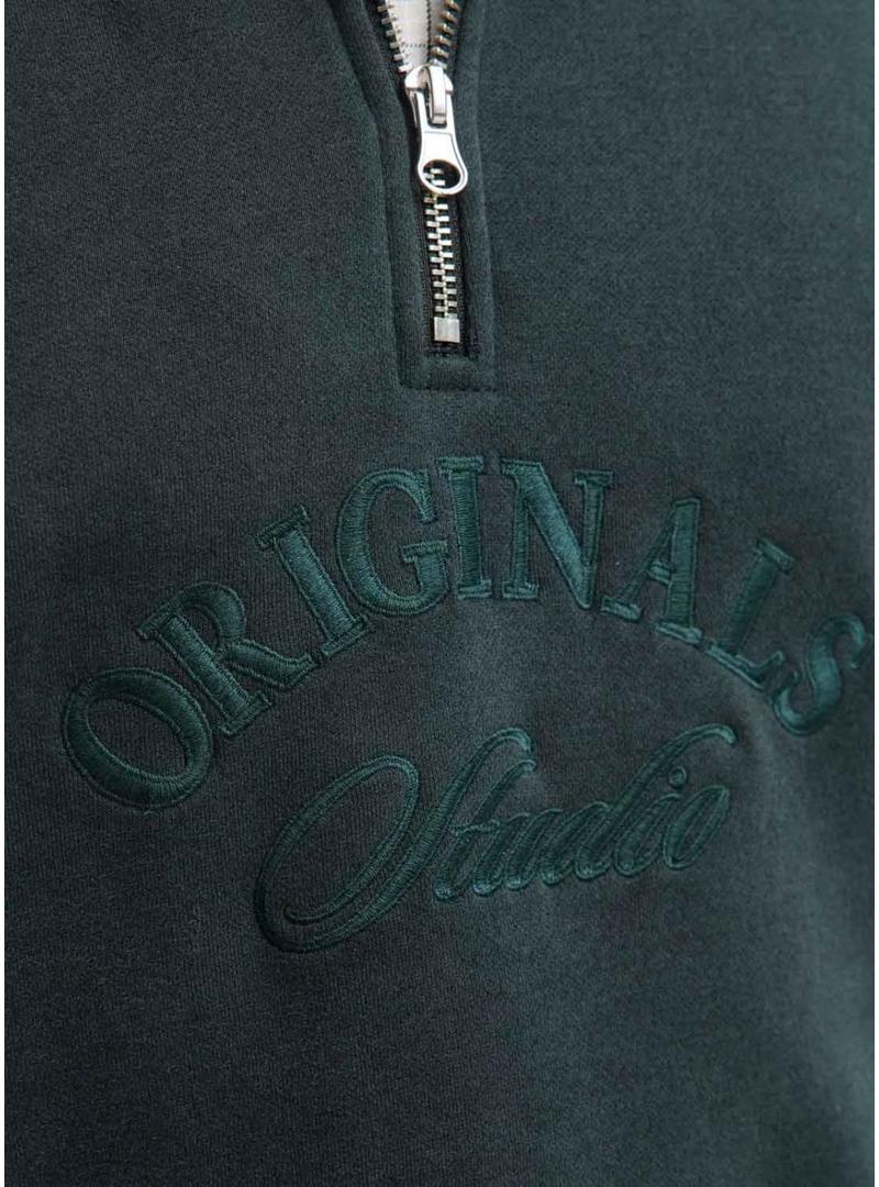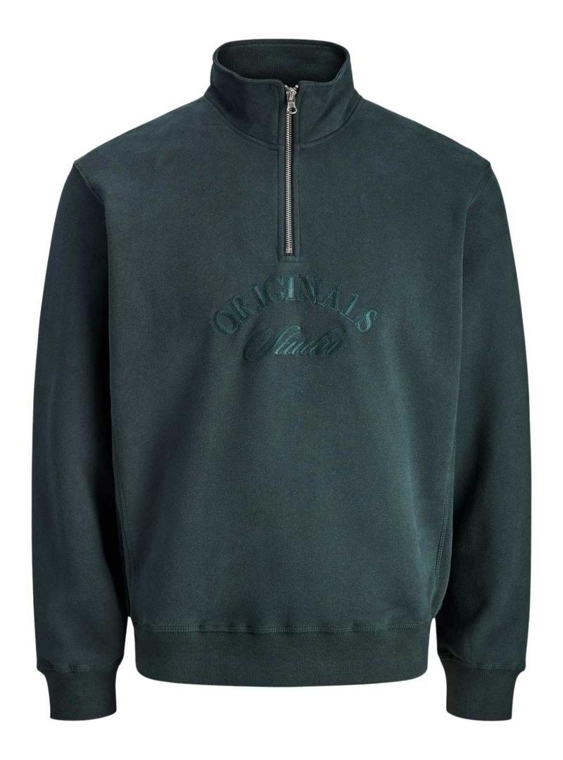 Moletom Jack and Jones. Modelo Bleecker. Cor verde. Gola alta com zíper. Etiqueta lateral. Logotipo bordado em tom frente. Extremidades caneladas. Ajuste regular.