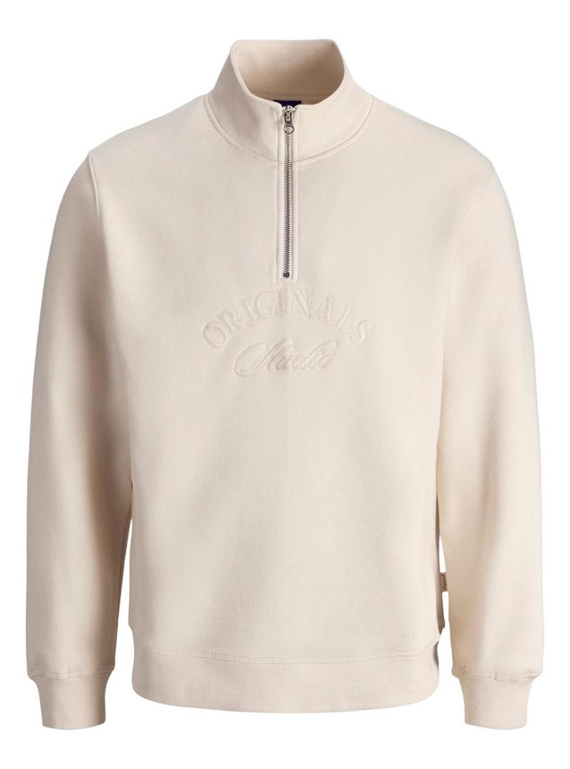 Moletom Jack and Jones. Modelo Bleecker. Cor bege. Gola alta com zíper. Etiqueta lateral. Logotipo bordado no mesmo tom na frente. Extremidades caneladas. Ajuste regular.