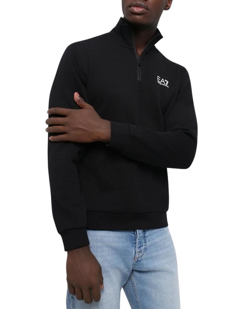 Moletom Emporio Armani EA7 com zíper no pescoço preto para homem