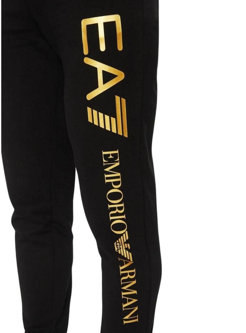 Calça Emporio Armani EA7 preta e dourada para homem.