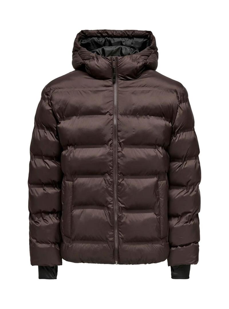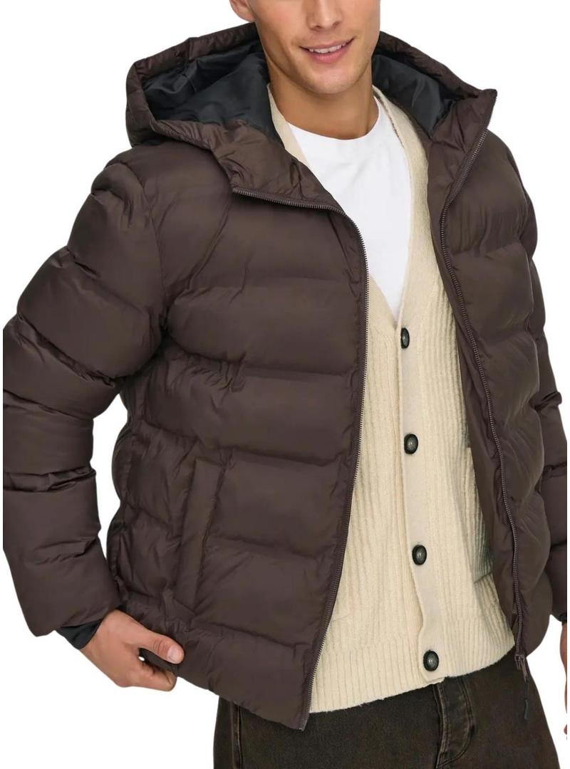 Coletor acolchoado com capuz marrom Only and Sons Union para homens