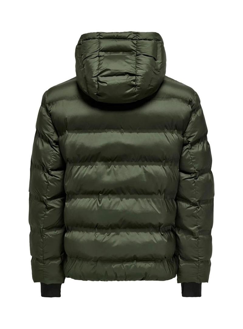 Casaco acolchoado com capuz verde Only and Sons Union para homem.
