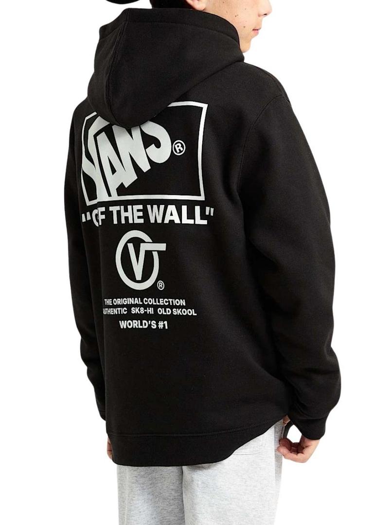 Moletom Vans. Modelo Stockpile. Cor preta. Com capuz. Bolso canguru. Extremidades elásticas. Logotipo estampado no peito e nas costas. Detalhes em cor branca. Ajuste ligeiramente folgado.