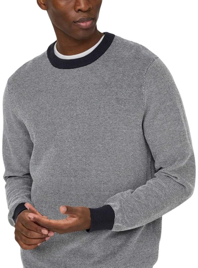 Camisola Only and Sons. Cor azul marinho. Tecido de malha macio. Gola redonda. Manga comprida. Corte regular. Acabamentos canelados em contraste.